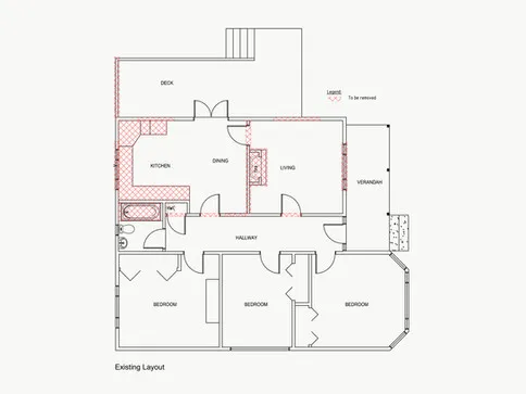 The existing house was traditionally built, with the kitchen located at the back and the lounge at the front of the house. After initially looking to keep the areas in their original configuration and simply removing the wall that separated them, the Spotted Ink team suggested swapping the kitchen and living areas around. That way, the client would have a view of her front garden towards the road, and the late day sun would come into the kitchen. It also made more sense to have the living area connected to the deck.