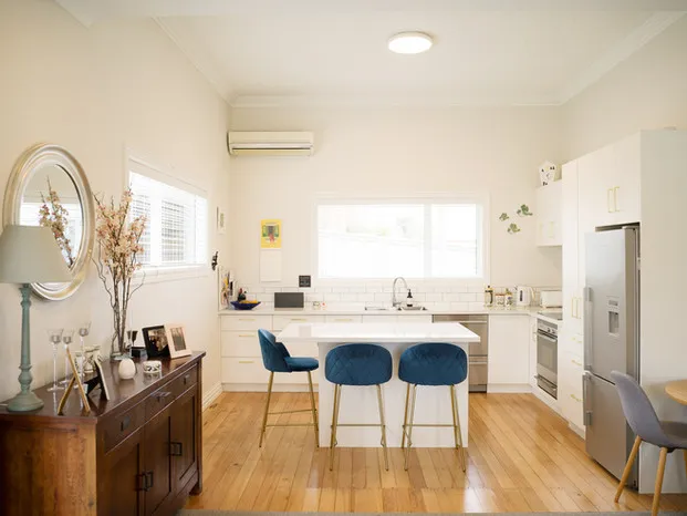 Stef Chittock is particularly happy her client trusted her with the suggested layout of swapping the kitchen and living areas around. A highlight for her is the client’s choice of kitchen finishings with blue and gold accents. Overall, this is a beautiful example of successfully achieving the delicate balance between the original and the modern, without compromising on the rich character of this traditional Dunedin villa.